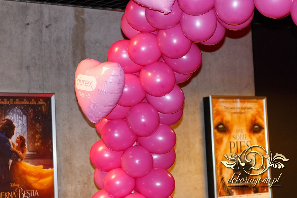 Wielka akcja promocyjna w kinach Multikino w Całej Polsce. Tonacja różowego idealnie dopasowała się do wnętrza przejścia w kinie, a dodatkowo zawieszone serduszka z logiem Durex-a dodały urok.