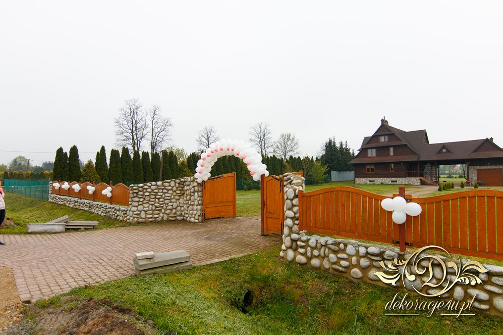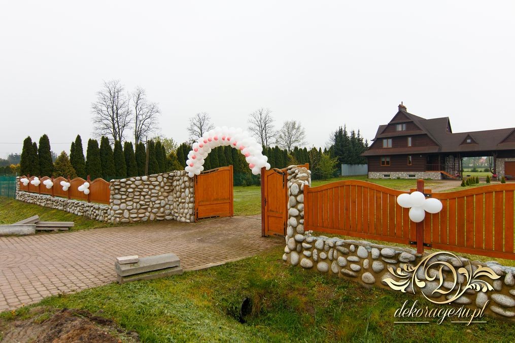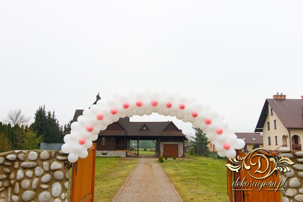 Coraz bardziej popularna staje się brama balonowa z dodatkiem małych baloników z przodu. Efekt jak widać na zdjęciach jest fajny.