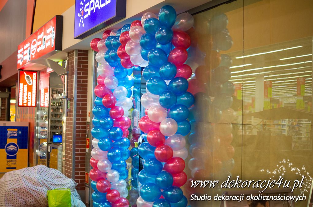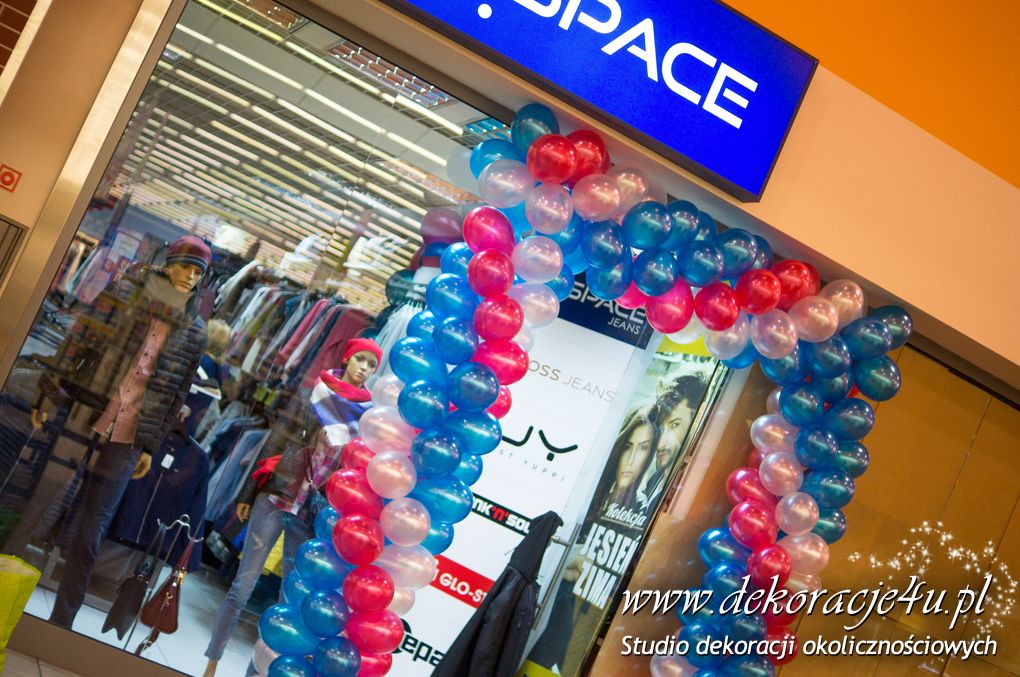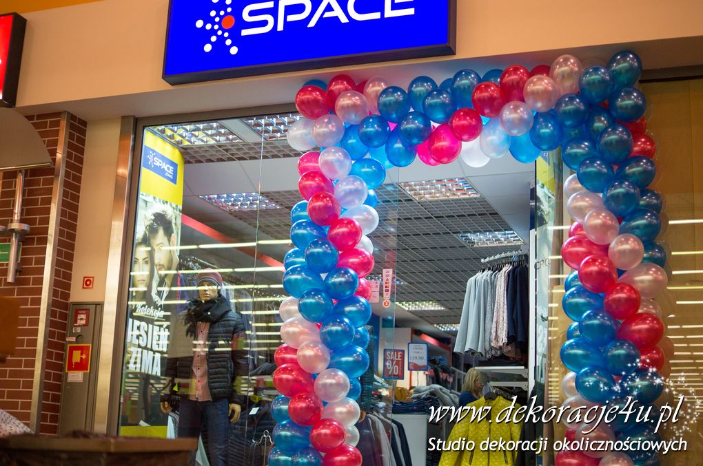 Dekoracje balonowe również przygotowaliśmy na urodziny salonu SPACE w Rzeszowie – kolory niebieski, biały i czerwony.