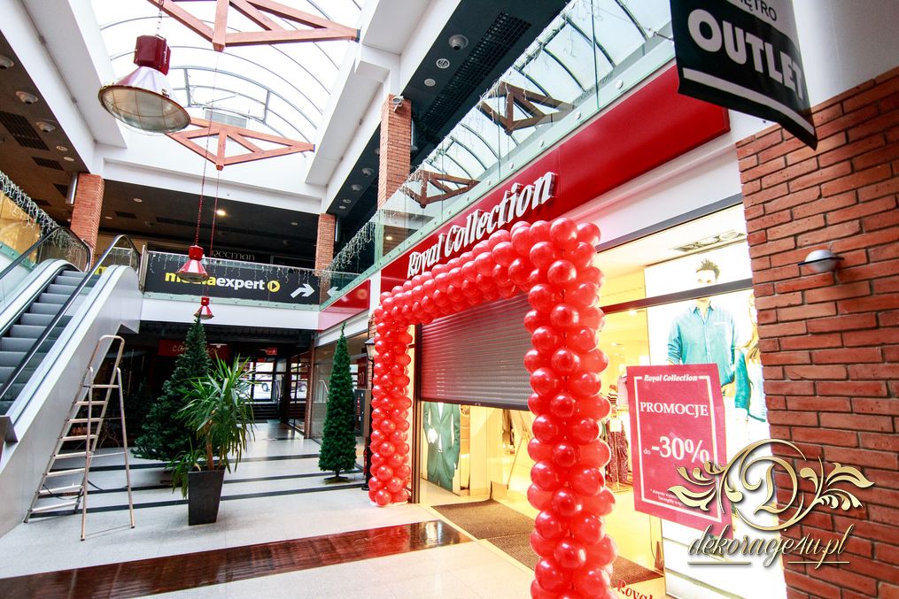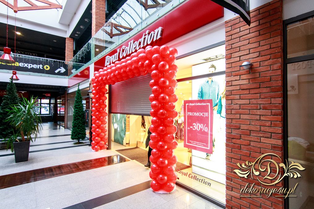 Piękna czerwona brama balonowa w rzeszowskiej Galerii Graffica. Tym razem z okazji urodzin sklepu Royal Collection.
