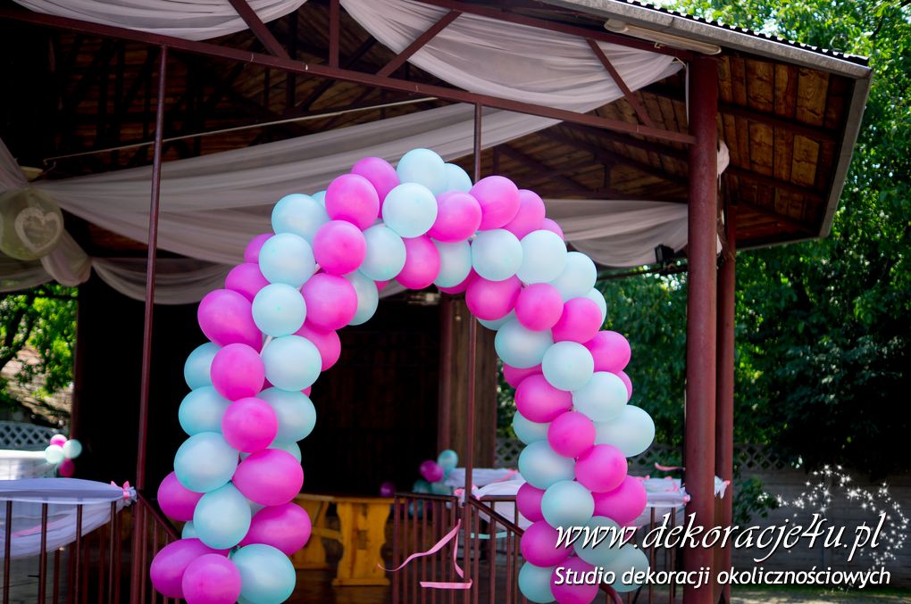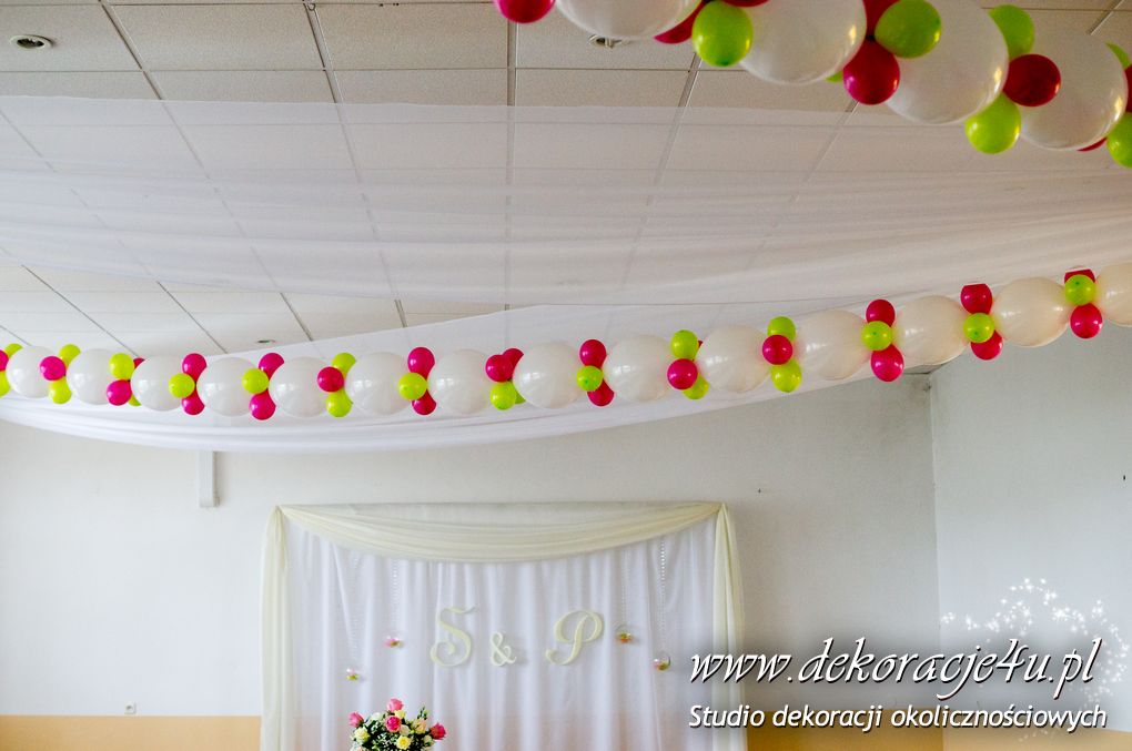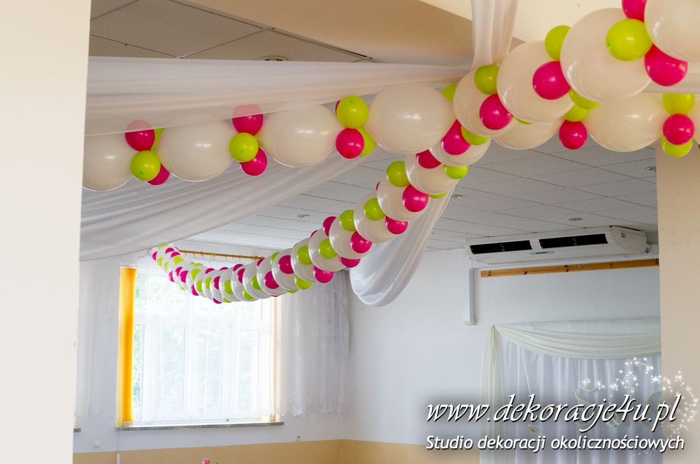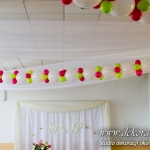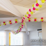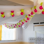 Nasz firma miała okazję wykonać bramę balonową i dekoracje sufitu w domu weselnym w Gorliczynie. Duże balony połączone na suficie z małymi stworzyło niesamowity efekt wizualny na sali weselnej.