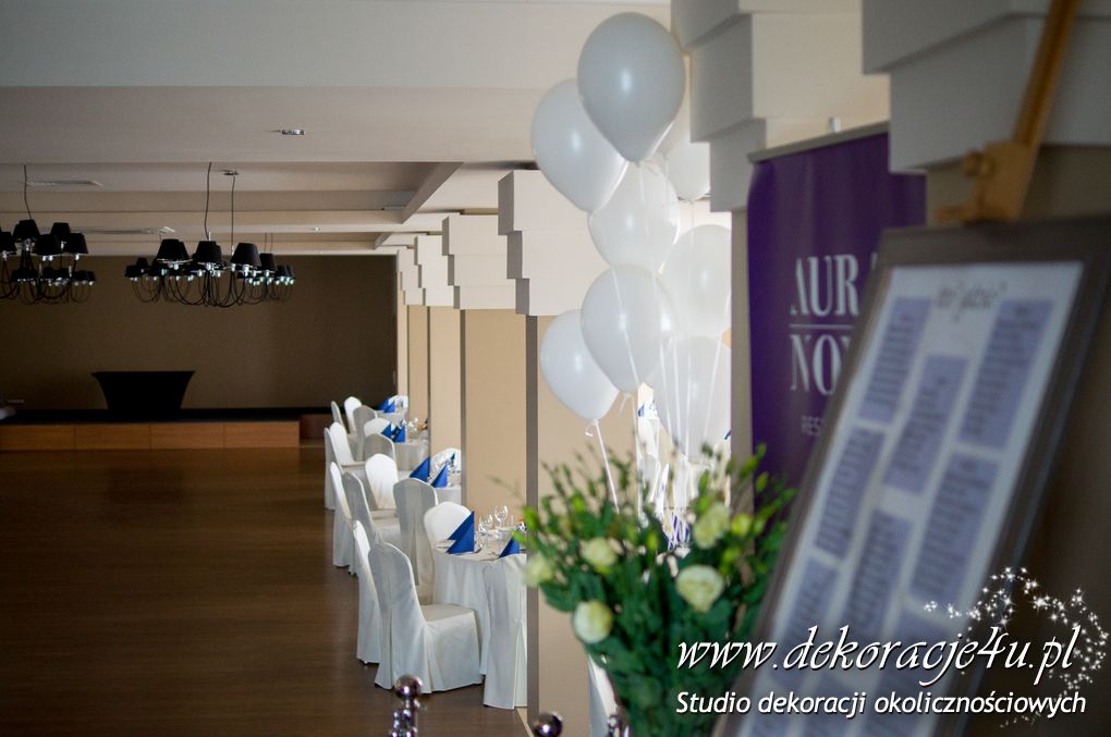 Aby uświęcić ten wspaniały dzień para Młodych postanowiła dla dzieci zrobić niespodziankę wykonaną przez naszą firmę w postaci balonów z helem przyczepionych w niektórych miejscach na sali tanecznej w Aura Nova.