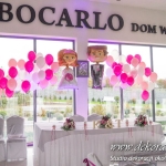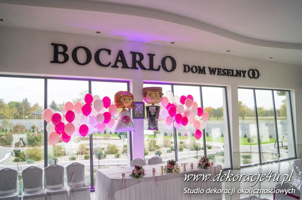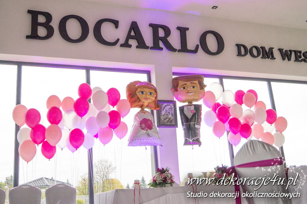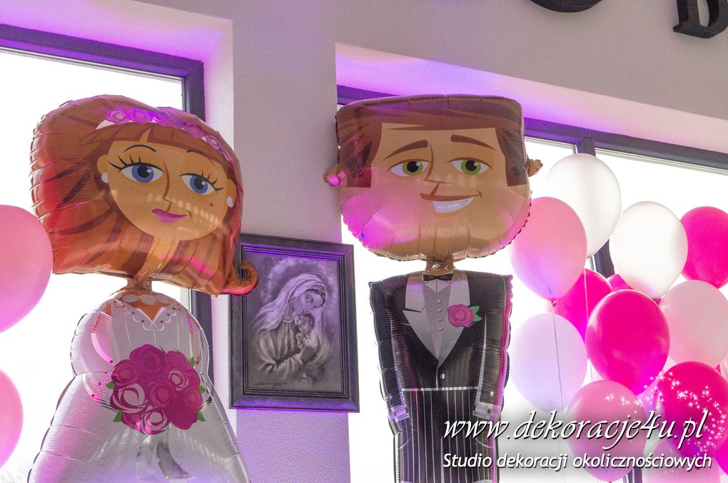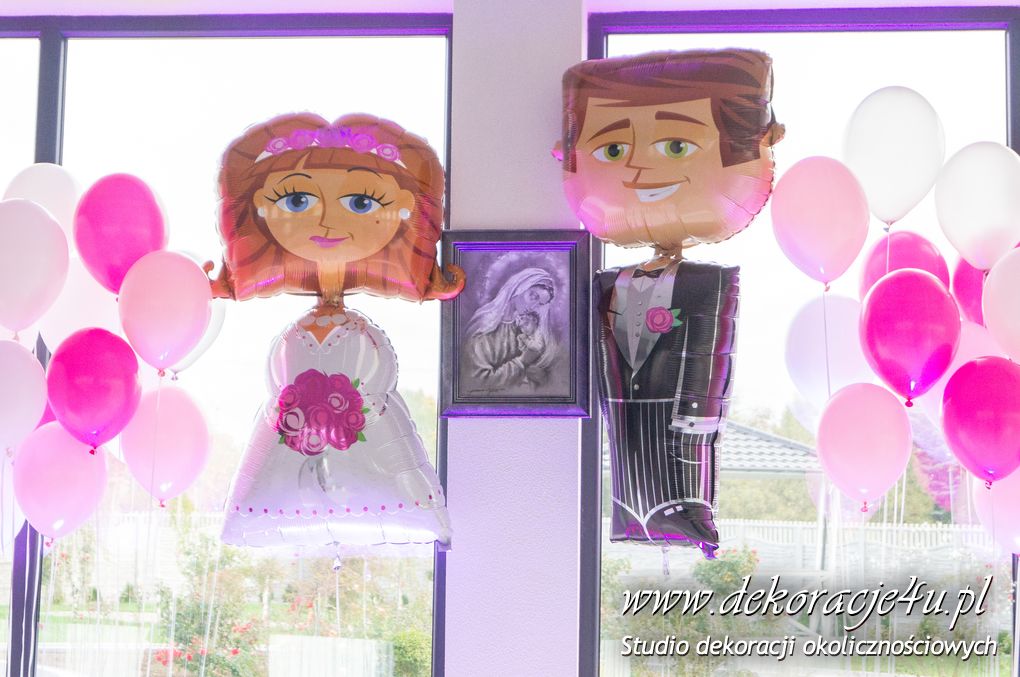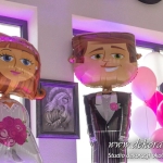 Dekoracja z balonami helowymi stają się coraz to bardziej modne. Ostatnio mieliśmy okazję stworzyć dla Pary Młodej ściankę z baloników i dmuchanych helem Parę Młodą.